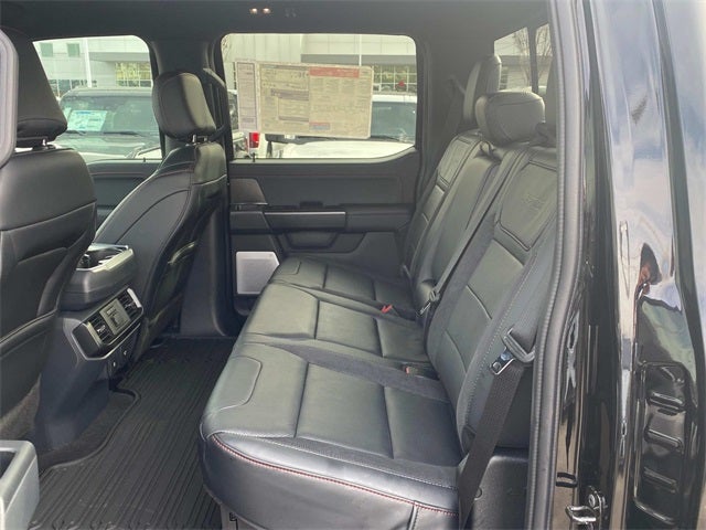 2025 Ford F-150 Raptor Black Metallic 4WD, 14 Speakers, 17 Cast Aluminum Wheels, 4-Wheel Disc Brakes, ABS brakes, Adjustable pedals, Air Conditioning, Alloy wheels, AM/FM radio: SiriusXM with 360L, Auto High-beam Headlights, Auto tilt-away steering wheel, Auto-dimming door mirrors, Auto-dimming Rear-View mirror, Automatic temperature control, Brake assist, Bumpers: body-color, Compass, Delay-off headlights, Driver door bin, Driver vanity mirror, Dual front impact airbags, Dual front side impact airbags, Electronic Locking w/4.10 Axle Ratio, Electronic Stability Control, Emergency communication system: SYNC 4 911 Assist, Equipment Group 801A Standard, Front anti-roll bar, Front Bucket Seats, Front Center Armrest, Front dual zone A/C, Front fog lights, Front License Plate Bracket, Front reading lights, Front wheel independent suspension, Fully automatic headlights, Garage door transmitter, Heads-Up Display, Heated door mirrors, Heated front seats, Heated rear seats, Heated steering wheel, Illuminated entry, Internet access capable: FordPass Connect 5G, Lane Departure Warning System, Leather steering wheel, Leather Trimmed Seats, Low tire pressure warning, Memory seat, Navigation system: Connected Navigation, Occupant sensing airbag, Outside temperature display, Overhead airbag, Overhead console, Panic alarm, Passenger door bin, Passenger vanity mirror, Pedal memory, Power door mirrors, Power driver seat, Power passenger seat, Power steering, Power windows, Radio data system, Radio: B&O Unleashed Sound System by Bang & Olufsen, Rain sensing wipers, Rear reading lights, Rear step bumper, Rear window defroster, Remote keyless entry, Retractable Tonneau Pickup Box Cover, Security system, Speed control, Speed-sensing steering, Split folding rear seat, Steering wheel memory, Steering wheel mounted audio controls, SYNC 4 w/Enhanced Voice Recognition, Tachometer, Telescoping steering wheel, Tilt steering wheel, Tough Bed Spray-In Bedliner, Traction control, Trip computer, Turn signal indicator mirrors, Variably intermittent wipers, Ventilated front seats.