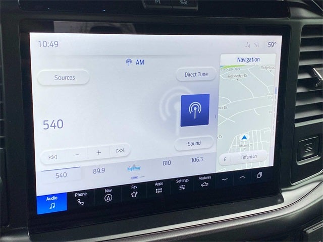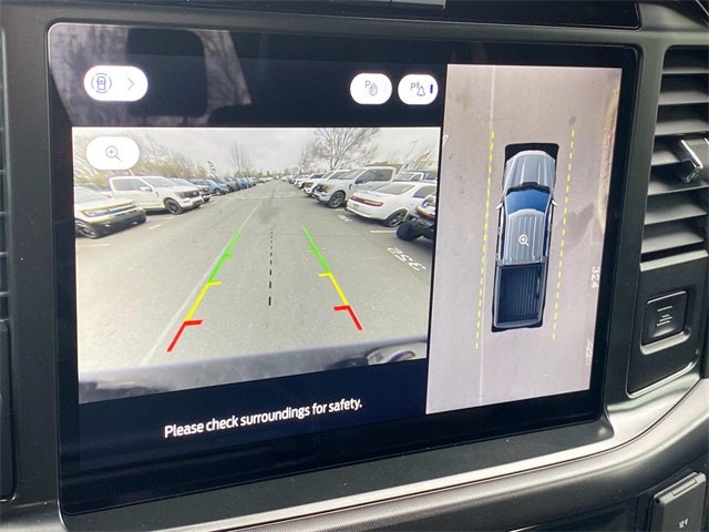 2025 Ford F-150 Tremor Black Metallic 4WD, 2nd Row Heated Seats, 4 Pickup Box Tie-Down Plates, 4-Wheel Disc Brakes, 8 Speakers, ABS brakes, Adjustable pedals, Air Conditioning, Alloy wheels, AM/FM radio: SiriusXM with 360L, Ambient Lighting, Auto High-beam Headlights, Auto-dimming door mirrors, Auto-Dimming Rear-View Mirror, Auto-dimming Rear-View mirror, Automatic temperature control, Bed Utility Package, Brake assist, Bumpers: body-color, Compass, Console Worksurface, Delay-off headlights, Driver door bin, Driver vanity mirror, Dual front impact airbags, Dual front side impact airbags, Electronic Locking w/3.73 Axle Ratio, Electronic Stability Control, Emergency communication system: SYNC 4 911 Assist, Equipment Group 402A High, Front anti-roll bar, Front Axle w/Torsen Differential, Front Bucket Seats, Front Center Armrest, Front dual zone A/C, Front fog lights, Front reading lights, Front wheel independent suspension, Fully automatic headlights, GVWR: 7,100 lbs Payload Package, Heads-Up Display, Heated door mirrors, Heated front seats, Heated Steering Wheel, Illuminated entry, Integrated Trailer Brake Controller, Internet access capable: FordPass Connect 5G, LED Box Lighting, LED Taillamps, Low tire pressure warning, Media Bin Door, Mobile Office Package, Modular Front Bumper & Carbon Black Rear Bumper, Navigation system: Connected Navigation, Occupant sensing airbag, Outside temperature display, Overhead airbag, Overhead console, Panic alarm, Partitioned Lockable Rear Storage, Passenger door bin, Passenger vanity mirror, Power door mirrors, Power driver seat, Power Glass Heated Sideview Mirrors, Power passenger seat, Power steering, Power Tailgate, Power windows, Power-Adjustable Pedals w/Memory, Premium Wrapped Steering Wheel, Radio data system, Radio: B&O Sound System by Bang & Olufsen, Radio: B&O Unleashed Sound System by Bang & Olufsen, Rear reading lights, Rear step bumper, Rear window defroster, Remote keyless entry, Security system, Speed control, Split folding rear seat, Steering wheel mounted audio controls, SYNC 4 w/Enhanced Voice Recognition, Tachometer, Tailgate Step w/Tailgate Work Surface, Telescoping steering wheel, Tilt steering wheel, Tow/Haul Package, Traction control, Trip computer, Turn signal indicator mirrors, Twin Panel Moonroof, Two-Speed Automatic AWD w/Mechanical Locking 4WD, Unique Sport Cloth 40/Console/40 Power Front Seat, Unique Tremor Leather-Trimmed Bucket Seats, Universal Garage Door Opener, Variably intermittent wipers, Voltmeter, Wheels: 18 Alloy w/Dark Matte Finish, Wireless Charging.