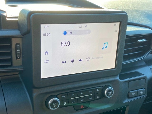 • Radio: AM/FM/MP3 Capable -inc: 100 watt siren/speaker prep kit, clock, 4 speakers, 1 USB port and 8" color LCD screen center-stack smart display, supports Android Auto and Apple CarPlay and fleet telematics modem Allows data to be provided to support Ford Pro telematics and data services via optional subscription, including but not limited to vehicle location, speed, idle time, fuel, vehicle diagnostics and maintenance alerts. Device enables optional telematics services through Ford or authorized providers via paid subscription. Subscribe at https://fordpro.com/en-us/telematics/ or call 1-833-811-FORD (3673).