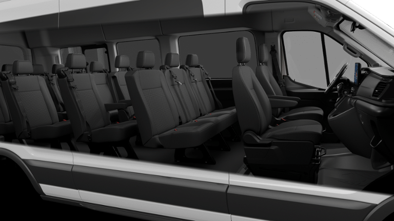 2026 Ford Transit-350 XLT Oxford White 2 Additional Keys (4 Total), 253-Degree Rear Door Opening, 3.73 Limited-Slip Axle Ratio, 3rd row seats: split-bench, 4-Wheel Disc Brakes, 4th-Row Bench Seat, 5th row bench seat, 8 Speakers, ABS brakes, Air Conditioning, Apple CarPlay/Android Auto, Auto High-beam Headlights, Back Up Alarm, Black High-Intensity Discharge (HID) Headlamps, Brake assist, Cloth Front Bucket Seats, Delay-off headlights, Driver door bin, Driver vanity mirror, Driver's Seat Mounted Armrest, Dual front impact airbags, Dual front side impact airbags, Dual rear wheels, Electronic Stability Control, Emergency communication system: 911 Assist, Ford Connectivity Package (1-Year Included), Front anti-roll bar, Front Bucket Seats, Front License Plate Bracket, Front reading lights, Front wheel independent suspension, Illuminated entry, Keyless Entry Keypad, Large Center Console, Low tire pressure warning, Midship Extended Range Fuel Tank (31 Gallons), Navigation system: Connected Navigation, Occupant sensing airbag, Overhead airbag, Panic alarm, Passenger door bin, Passenger Running Board, Passenger seat mounted armrest, Passenger vanity mirror, Power door mirrors, Power steering, Power windows, Rain sensing wipers, Rear air conditioning, Rear window defroster, Remote keyless entry, Remote Start, Speed control, Steering wheel mounted audio controls, SYNC 4, Tachometer, Telescoping steering wheel, Tilt steering wheel, Traction control, Variably intermittent wipers.