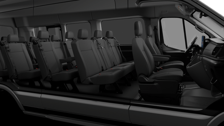 2026 Ford Transit-350 XLT Black Metallic 2 Additional Keys (4 Total), 3.73 Limited-Slip Axle Ratio, 3rd row seats: split-bench, 4-Wheel Disc Brakes, 4th-Row Bench Seat, 5th row bench seat, 8 Speakers, ABS brakes, Air Conditioning, Apple CarPlay/Android Auto, Auto High-beam Headlights, Back Up Alarm, Black High-Intensity Discharge (HID) Headlamps, Brake assist, Cloth Front Bucket Seats, Delay-off headlights, Driver door bin, Driver vanity mirror, Driver's Seat Mounted Armrest, Dual front impact airbags, Dual front side impact airbags, Dual rear wheels, Electronic Stability Control, Emergency communication system: 911 Assist, Ford Connectivity Package (1-Year Included), Front anti-roll bar, Front Bucket Seats, Front License Plate Bracket, Front reading lights, Front wheel independent suspension, Illuminated entry, Keyless Entry Keypad, Large Center Console, Low tire pressure warning, Midship Extended Range Fuel Tank (31 Gallons), Navigation system: Connected Navigation, Occupant sensing airbag, Overhead airbag, Panic alarm, Passenger door bin, Passenger Running Board, Passenger seat mounted armrest, Passenger vanity mirror, Power door mirrors, Power steering, Power windows, Rain sensing wipers, Rear air conditioning, Rear window defroster, Remote keyless entry, Speed control, Steering wheel mounted audio controls, SYNC 4, Tachometer, Telescoping steering wheel, Tilt steering wheel, Traction control, Variably intermittent wipers.