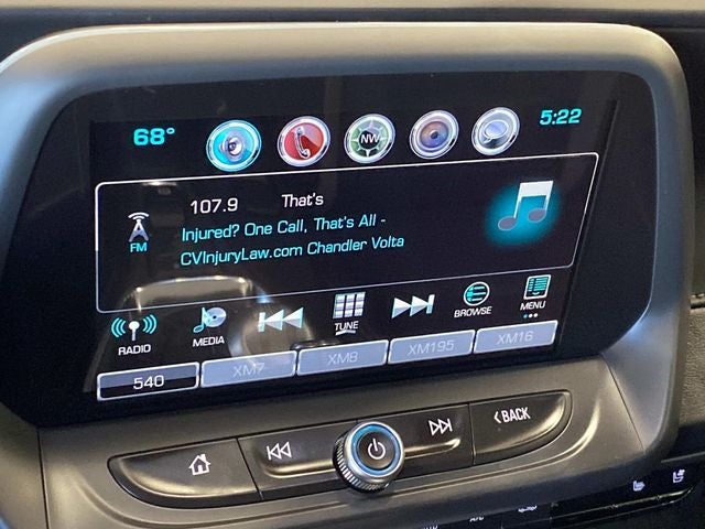 - Audio system, Chevrolet MyLink Radio with 8" diagonal color touch-screen, AM/FM stereo with seek-and-scan and digital clock includes Bluetooth® streaming audio for music and select phones; voice-activated technology for radio and phone; featuring Android Auto and Apple CarPlay capability for compatible phone and Shop with the ability to browse, select and install apps to your vehicle. Apps include Pandora, iHeartRadio, The Weather Channel and more